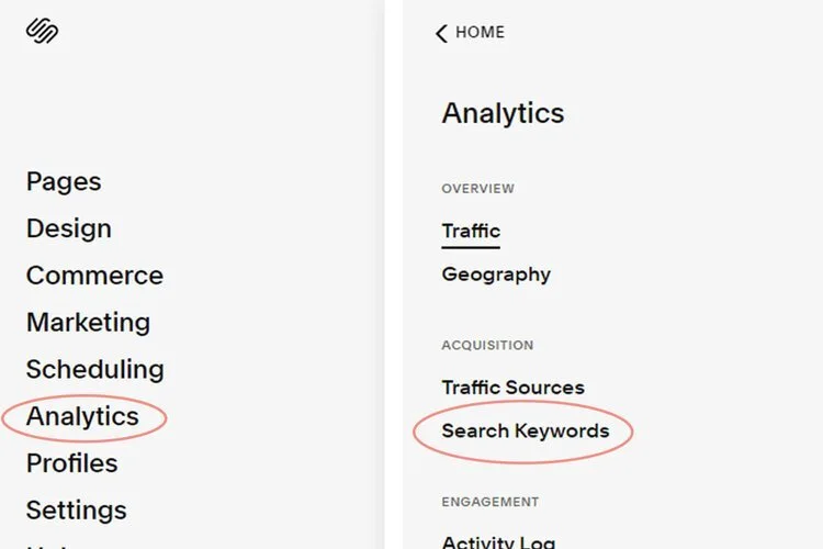 Funksjonen finn du i Squarespace ved å gå til “Analytics” og velje “Search Keywords.